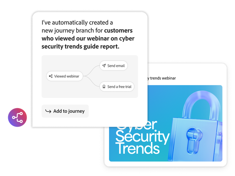- Activadores de interacción en tiempo real. Inicia la interacción y automatiza la progresión del recorrido mediante la escucha activa y los activadores de actividad que responden al comportamiento en tiempo real.