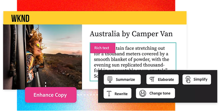 La inteligencia aplicada al contenido e impulsada por IA te permite agilizar los flujos de trabajo de contenido entre equipos, reutilizar recursos con mejor interacción y ofrecer experiencias personalizadas que dejen huella y animen a pasar a la acción.
