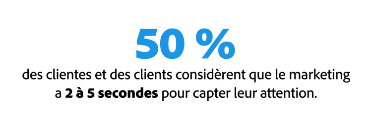 1. Le temps dont disposent les marques pour faire bonne impression est réduit : les clients estiment que le contenu visible sur les réseaux sociaux, dans les publicités digitales et les e-mails promotionnels n'a que deux à cinq secondes pour capter leur attention.
