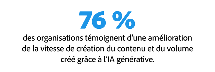 2. Les expérimentations avec l'IA générative portent leurs fruits : 76 % des organisations ont constaté des améliorations en termes de volume et de rapidité de production de contenu générés par l'IA générative.