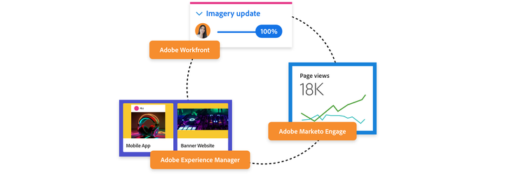 Utilisées ensemble, les solutions Adobe Workfront, Adobe Experience Manager et Adobe Marketo Engage rationalisent les content supply chains et facilitent la collaboration entre les équipes afin d’offrir des expériences client exceptionnelles.