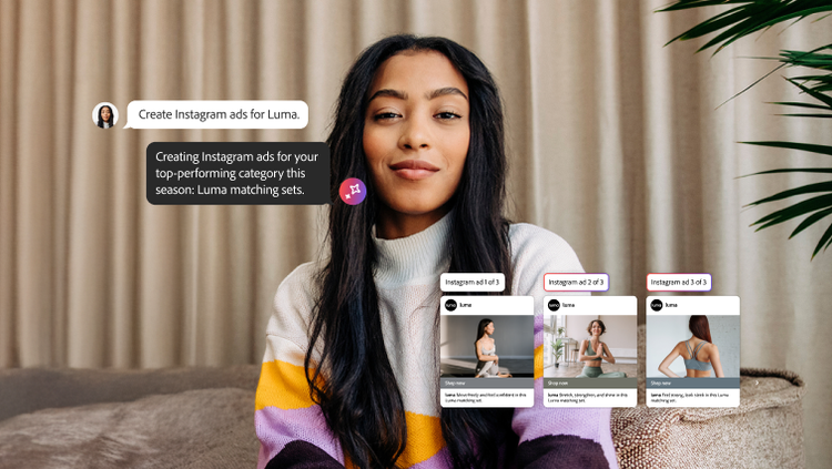 - Création personnalisée grâce aux audiences Adobe Real-Time Customer Data Platform (CDP). Le contenu obtient de meilleures performances lorsqu’il est personnalisé selon l’audience appropriée, l’étape du parcours et les préférences du persona. En plus d’adapter le contenu aux préférences de messages et au type de canal, les spécialistes marketing peuvent sélectionner une audience directement depuis Real-Time CDP dans GenStudio for Performance Marketing pour optimiser leur contenu selon leurs objectifs marketing.