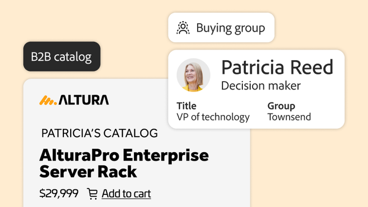 • Expériences personnalisées. Différenciez les expériences selon qu’elles s’adressent à un public B2B ou B2C. Présentez un branding, des offres, des tarifs et des catalogues adaptés au type de clientèle qui se connecte.