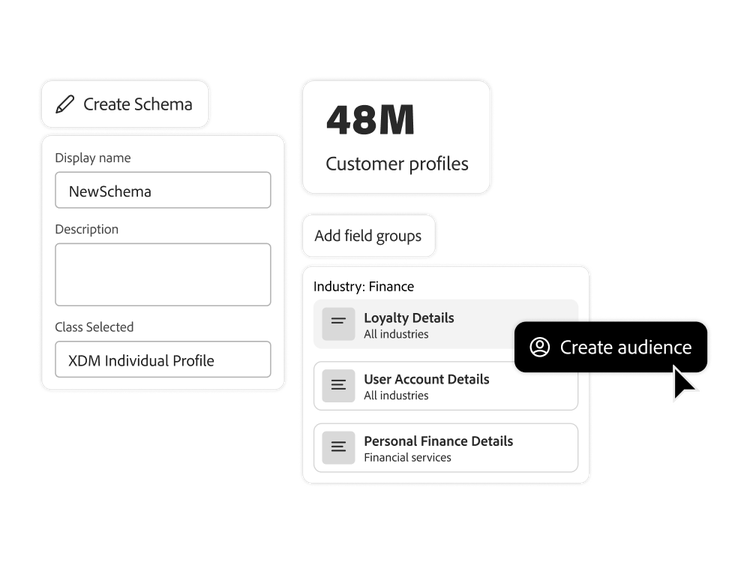 - Schémas préconfigurés. Optimisez les workflows internes à l’aide de schémas de données B2B et B2C préconfigurés ou personnalisez-les afin d’intégrer plus rapidement des insights et de répondre à vos besoins spécifiques et complexes en matière de données d’entreprise.