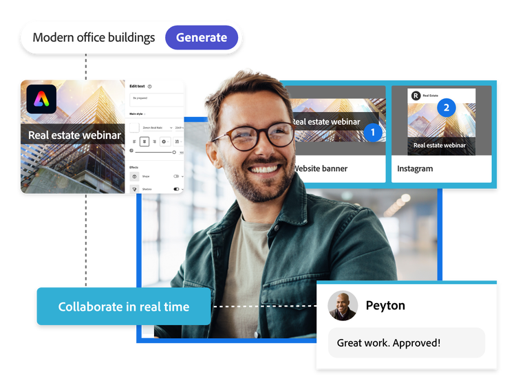 GenStudio for Performance Marketing integrates seamlessly with Adobe Workfront and Adobe Experience Manager Assets, streamlining content workflows, enabling better collaboration and accelerating campaign launches. This integration ensures marketers have a cohesive, efficient content creation, activation and management experience.