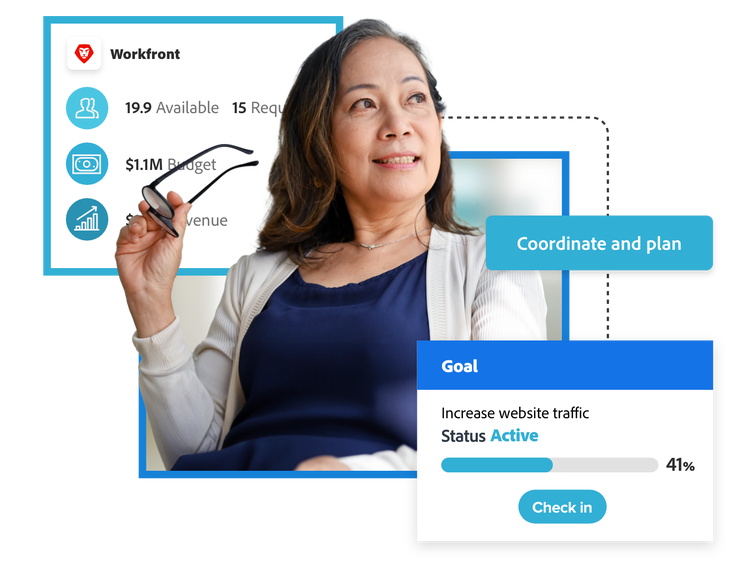 • Streamline approvals with built-in review workflows or the Adobe Workfront proofing integration.