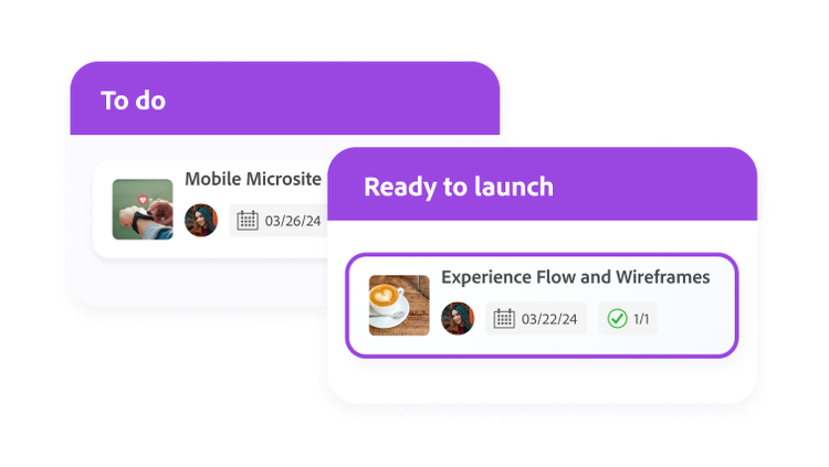 A project management view categorized into to-do, in-progress, and ready-to-launch stages