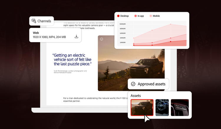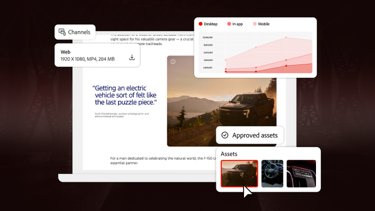 With Adobe, Ford built an end-to-end solution that brings creative and content teams together — automating tedious workflows, enabling brand governance and unlocking rapid publishing. The result is Ford From the Road, a new digital newsroom that blends journalism and brand storytelling. Built with the help of Adobe Experience Manager Sites and Adobe GenStudio products, including Adobe Experience Manager Assets, Adobe Creative Cloud and Frame.io, the content supply chain platform allows Ford to share stories more quickly, with fewer bottlenecks and maintain a stronger connection between global strategy and local execution.