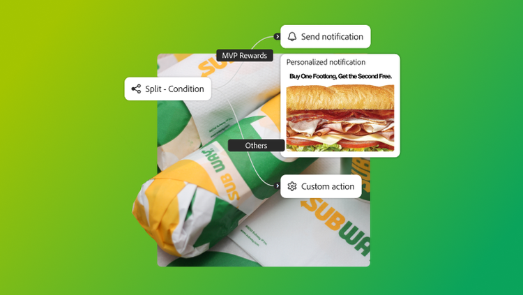 Since the integration of Journey Optimizer and Campaign, Subway has seen a 25% increase in MVP Rewards memberships. “We’ve been able to take this rich set of data that we've built up about guests on our platforms and really activate that into our marketing channels with personalised emails and push notifications in Adobe Campaign,” Hooper says.