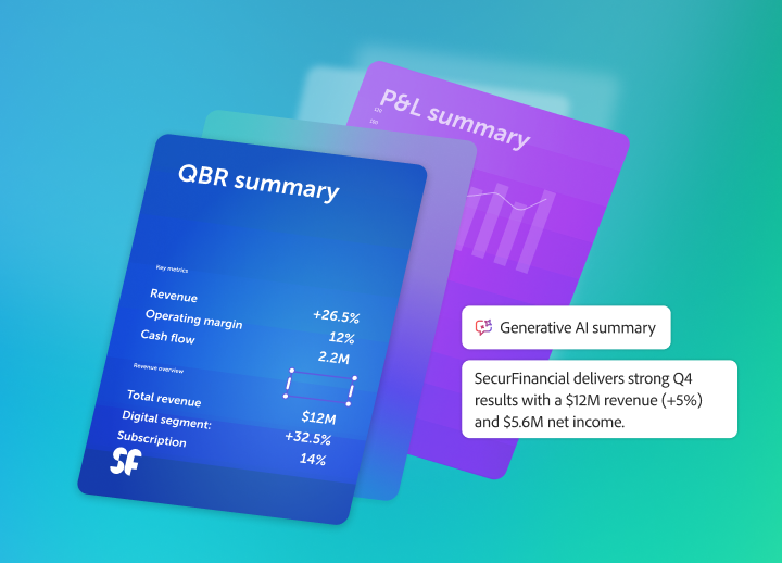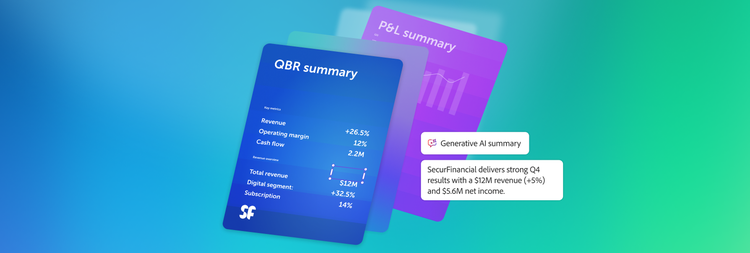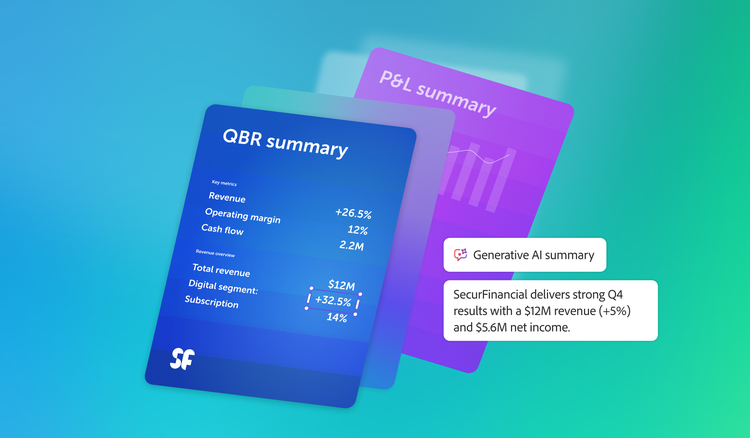 Compiling data, streamlining review cycles and validating information is critical. Adobe Acrobat Studio empowers finance teams to accelerate document analysis, generate AI-ready reports and align stakeholders for faster, more accurate decision-making.