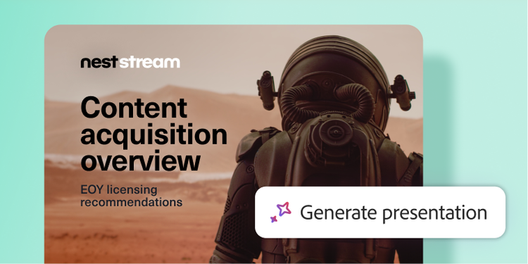 Create polished, on-brand summaries and recommendations for internal teams using the generate presentation feature and Adobe Express integrations.