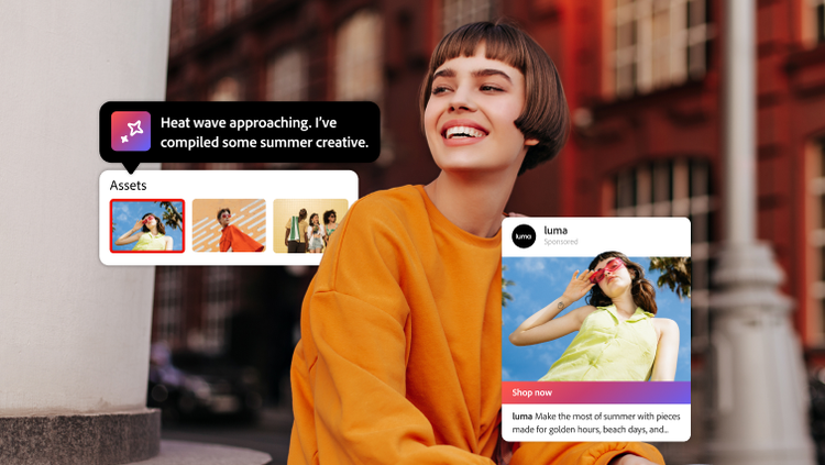 Don’t wait weeks for fresh creative. With built-in generative AI, easily create new assets or modify existing ones. Make quick edits like resizing and background removal or fit any asset into any placement with Generative Expand. And when time is of the essence, approved content can be pulled directly from Adobe Experience Manager Assets or any third-party DAM. With GenStudio for Performance Marketing, your team is always ready for action.
