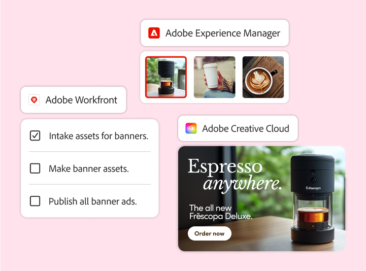 Create scalable enterprise workflows by connecting Workfront with Adobe products and third-party applications for one powerful work management solution.