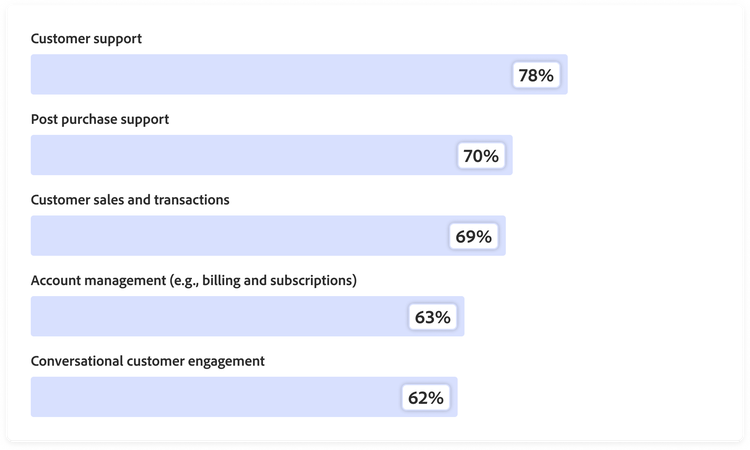 - Support sales with autonomous product recommendations or lead qualification (58%).