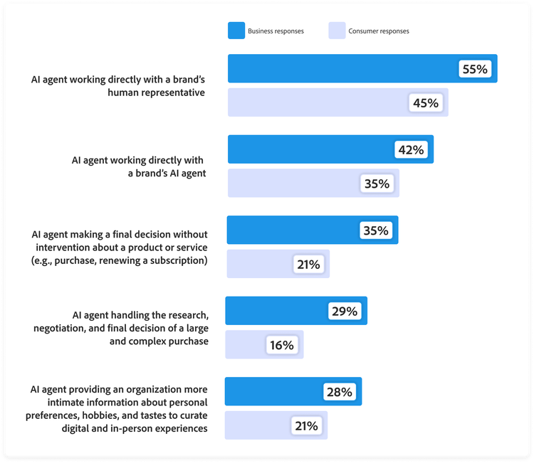 - Interact with other agents deployed by customers, vendors or procurement (49%).