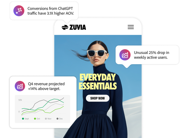 Automatizza l’analisi e la visualizzazione dei dati cliente cross-channel con l’Agente Data Insights al fine di ottenere insight approfonditi e intraprendere azioni pre-approvate, come diagnosticare i fattori nascosti e suggerire miglioramenti.