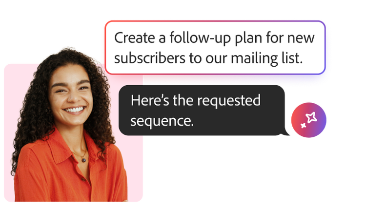 - Facile creazione del percorso. Genera percorsi in più fasi utilizzando prompt testuali in linguaggio naturale, immagini* o brief.