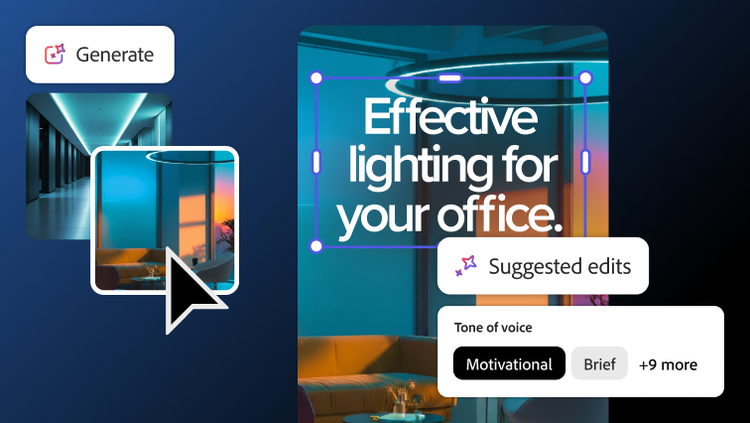 Rivoluziona ogni fase del processo creativo: con la suite di strumenti di IA generativa di Adobe, i team possono realizzare contenuti in linea con il brand, adattare le risorse al pubblico e trasformare i dati in insight immediati in modo rapido ed efficiente.