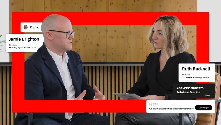Il 93% delle aziende afferma che la clientela si aspetta più contenuti personalizzati su diversi punti di contatto. Segui la conversazione di Adobe e Merkle e scopri come usare la content supply chain e gli strumenti IA di Adobe per velocizzare i contenuti.