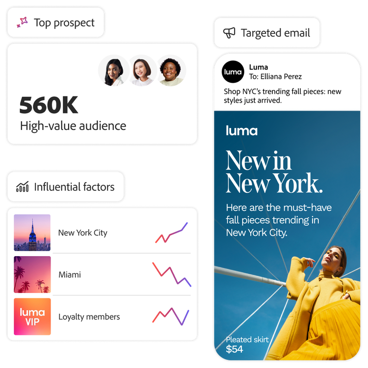 Le esperienze personalizzate generano fidelizzazione e ricavi. Con la soluzione di engagement dei clienti basata sull'IA di Adobe, i flussi di lavoro assistiti da agenti aiutano i team a ideare, eseguire e analizzare le attività di marketing, offrendo insight approfonditi per coinvolgere i clienti in modo rapido e personalizzato.