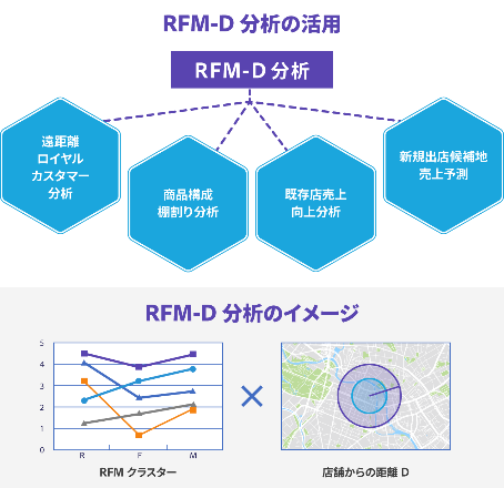 RFM-D分析では、コンビニエンス性を求める近距離圏の顧客と、独自性を求めて来店する長距離圏の顧客を分け、それぞれのニーズに合ったマーケティング施策を実行します。