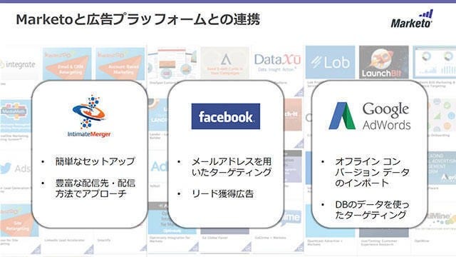 例えば、Adobe Marketo Engageは、約4億人のオーディエンスデータを保有する日本最大級のデータマーケティングプラットフォーム(DMP)の「Intimate Merger」とも連携しています。