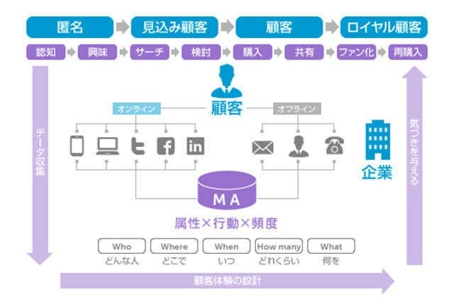 マーケティングオートメーションとは、収益向上と業務の省力化を目的として、マーケティング活動を自動化、効率化するための方法論、技術です。英語のmarketing automationの接頭語を取り、しばしば「MA」と呼称されます。この記事でも「マーケティングオートメーション」を「MA」と表現します。