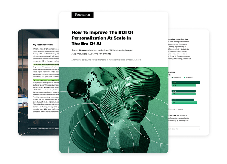 Forresterと共同で開発したパーソナライゼーションに関する包括的なレポート AI時代におけるパーソナライゼーションのROIを高める方法 をぜひご覧ください。ビジネス成果を推進する関連性のある有意義なエクスペリエンスでより大きなブランドの信頼を構築するための貴重なインサイトとアクションプランをご案内しています。