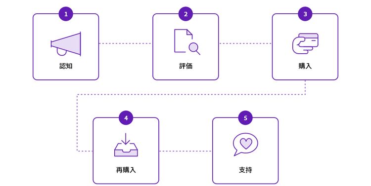 デジタルCXジャーニーには、「認知」、「評価」、「購入」、「再購入」、「支持」の5つの段階があります。企業は、各段階で優れたデジタル体験を提供することで、顧客ロイヤルティを高め、成長を促進できます。