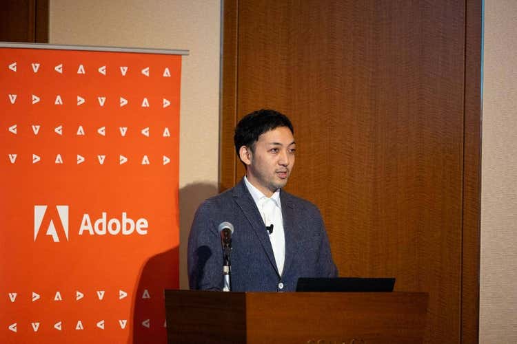 この日の講演では、アドビ カスタマーソリューションズ クライアントパートナーの権平 康祐(ごんだいら やすひろ)が、日立建機におけるデジタルメディアのあるべき姿の実現に向けた取り組みについて、そこに至るまでの経緯やアドビとのパートナーシップなどについて解説した。