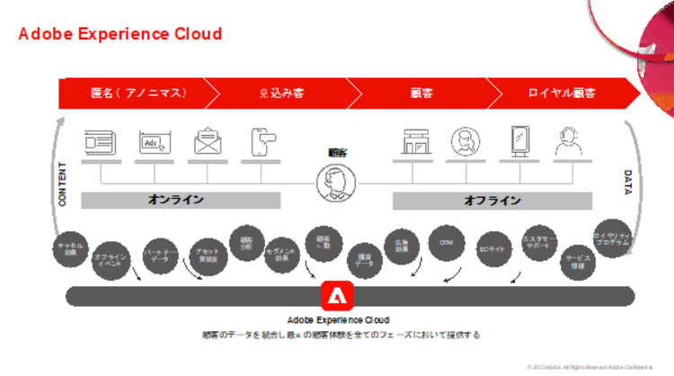 アドビの過去の調査でもクロスチャネルのコミュニケーションによってブランド信頼度がより高まるという報告があります。特に通信業界の場合、お客さまのタッチポイントは複数にまたがっていますし、オンライン上でもリアル店舗と同様の顧客体験を求めるお客さまの声は増えていると聞きます。今までは店舗やコールセンターでの顧客体験をよくすることに集中してきましたが、今後はリアルを含めてオウンドメディアやソーシャルメディアなど、クロスチャネルで一人ひとりのお客さまに適切な情報を提供していくためのデータ活用が求められていきます。