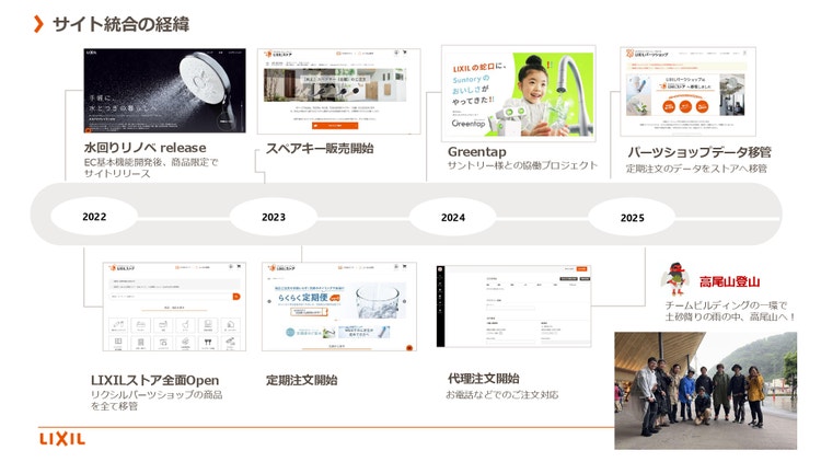 この状況を打開するため、2021年からスタートしたのがEC統合プロジェクトです。まだ既存サイトである「LIXILオンラインショップ」と「LIXILパーツショップ」は残っているものの、2022年に公開した「LIXILストア」へと徐々に統合を進めている最中だと言います。