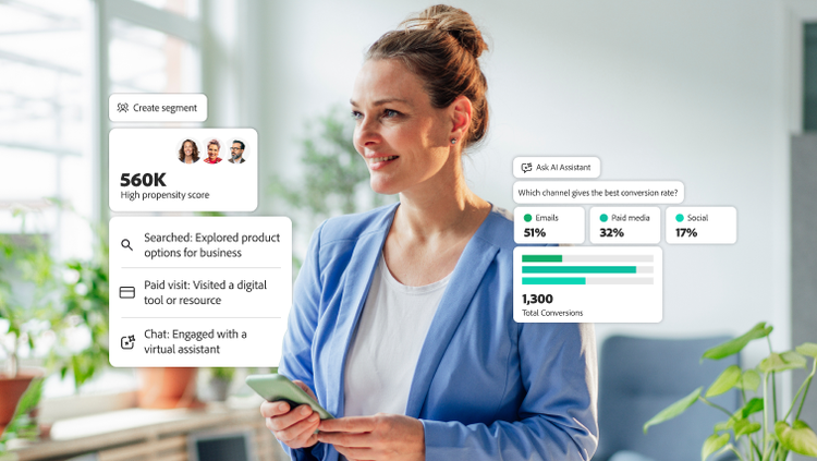 真に効果的なパーソナライズされたカスタマージャーニーを創出し、次世代のエクスペリエンスを提供するためには、企業は戦略的に行動する必要があります。つまり、AIと自動化を活用して分散したデータを統合し、マーケティングや営業チームが顧客の共感を呼ぶコンテンツを把握できるようにすることです。Adobe Experience ManagerやAdobe Workfrontなどのアプリケーションでデジタルアセットを整理・管理することで、会社はあらゆるチャネルを通じてタイミングよくパーソナライズされたメッセージを配信し、リアルタイムなつながりを促進できます。