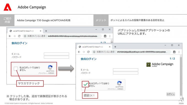- Adobe Campaign ClassicにおけるSecurity(Google reCAPTCHA実装⽅法含む)