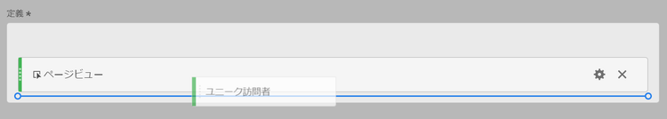続いて、『ユニーク訪問者』を追加します。コンポーネントエリアにある『ユニーク訪問者』の指標をドラッグし、先ほど適用した『ページビュー』の少し下側へもっていくと、下図の様に青い実線が表示されます。