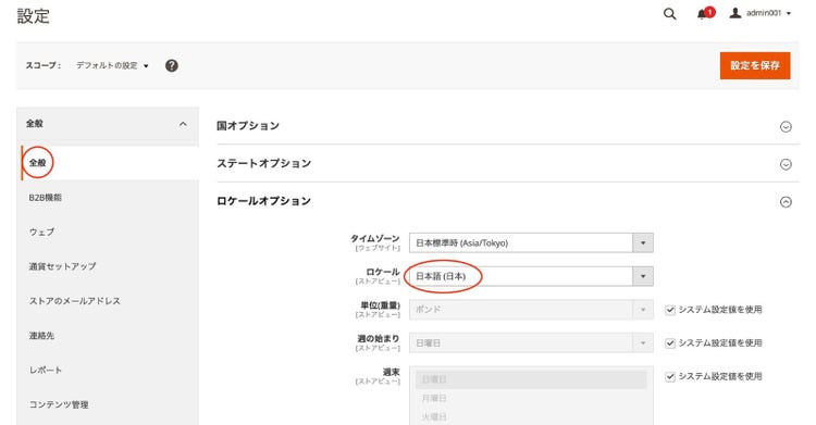 - 設定画面の”全般”の”ロケールオプション”から”ロケール”で日本語を選びます。