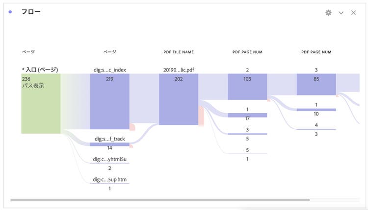 これら計測されるデータは、埋め込みを行っているページ計測と同じレポート設定を通して実施を行います。これにより、Adobe Analytics上にて閲覧しているページやその内部を一貫したパスレポートやセグメント機能を利用した分析なども簡単に実現できるようになっています。