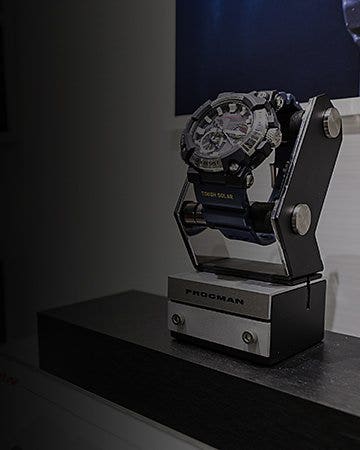 当時時計は壊れやすい精密機器だったが、開発者の“落としても壊れない時計を作りたい” という思いから開発がスタート。ウレタンでケース全面をカバーしながら心臓部であるモジュールを点で支える中空構造が開発され、初代モデル『DW-5000C』が1983年にリリースされた。
