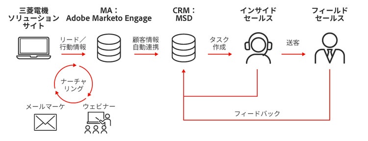 三菱電機株式会社は、2021年から事業本部をまたがる形で、営業本部内にデジタルマーケティング推進グループを立ち上げ、自社のB2Bマーケティングの刷新に取り組んでいる。その要となるのは、全事業本部の個別事業を統合する顧客起点のソリューションサイトと、そこから得られるリードを営業へとつなげるMA(マーケティングオートメーション)思想に基づくプロセス構築だった。改革の現場で奔走したキーパーソンが語る。