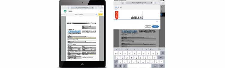 契約書類の署名欄をタップするとウィンドウが現れ、タイピングによって署名が完了する