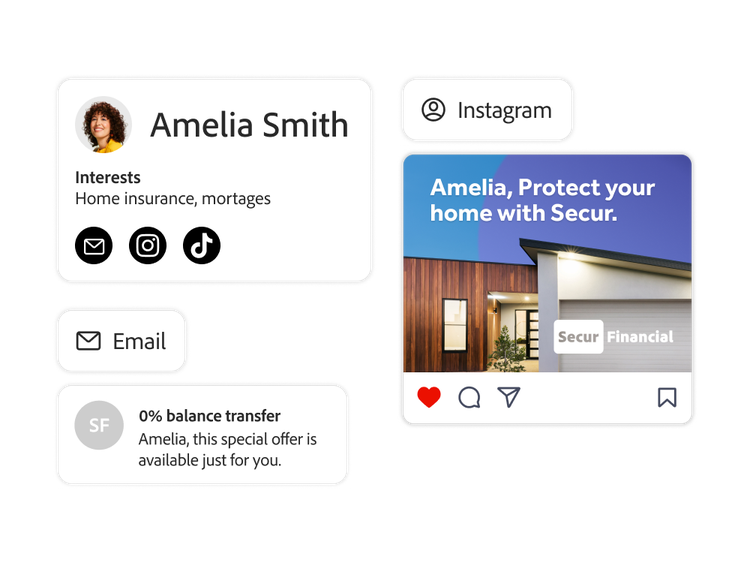 タイミングとターゲティングは、優良な金融顧客を新規獲得するために極めて重要です。潜在顧客が住宅ローン、自動車ローン、高利回りの貯蓄口座など、金融商品に関心を持っている場合、アドビのソリューションを活用すれば、チャネルをまたいでターゲットを絞り込み、大規模にリーチできます。