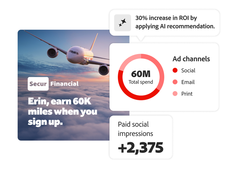 収益性の高い成長を実現するには、新規口座の数を増やし、質を高めなくてはなりません。アドビは、有望な顧客のより正確な特定とターゲティングに役立ちます。強化されたデータ、カスタマイズされたエクスペリエンス、AIを活用したメディアミックスモデリングを使用して、チャネルやパートナーをまたいで支出を最適化し、ROIを向上させることができます。