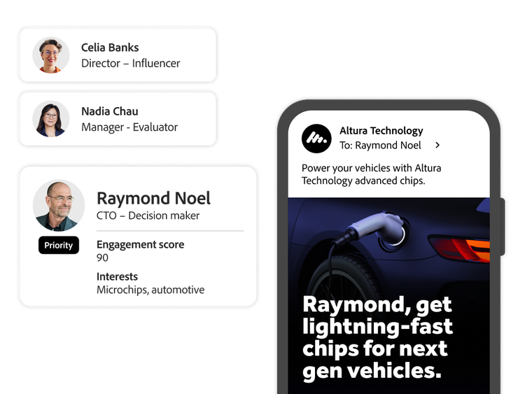 多様な購買グループ、長期にわたるセールスサイクル、広範なテクノロジーポートフォリオには、多種多様なコンテンツが必要です。AIを搭載したアドビのソリューションを使用すれば、計画から制作、管理、配信に至るまで、マーケティング、セールス、製品のコンテンツを簡単にパーソナライズできます。