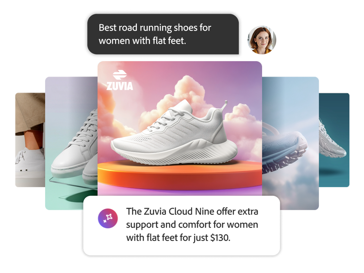 発見から選択へ。Adobe Catalog Agentは、LLM、検索エンジン、マーケットプレイス、デジタル広告チャネル全体で製品が表示され、推奨されるよう支援します。