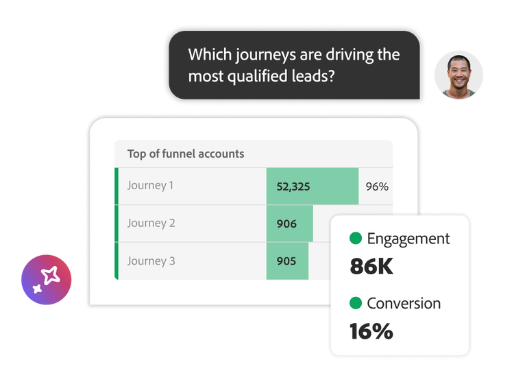 生成AIを活用し、購入者一人ひとりのニーズや質問を正確にターゲティングする、インテリジェントなジャーニーを作成します。