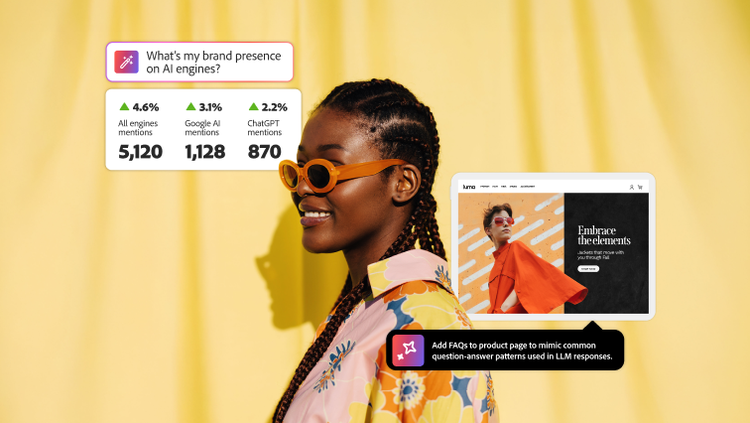 Adobe LLM Optimizerは、あなたのブランドを、見つけやすく信頼のおける、AI検索で選ばれやすいもにします。実際に体験してみてください。