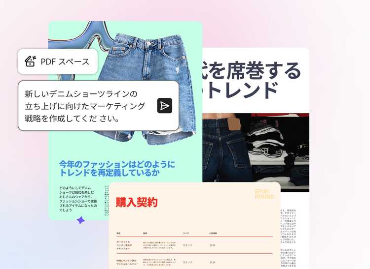 新しく生まれたAcrobat Studioは、文書業務に関するあらゆる課題解決をサポートする統合型のプラットフォームです。その中核となる新機能、「PDF スペース」は強化したAI技術を使いながら、チーム全体が同じ知見を共有し、プロジェクトを進めることができる環境を実現します。