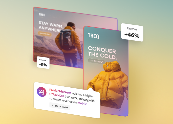 - 세부적인 콘텐츠 측정. 성과를 개별 크리에이티브 요소 수준까지 세분화하여 전환을 유도하는 메시지, 비주얼, CTA를 정확히 파악할 수 있습니다.