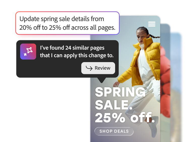 - 에이전틱 AI 콘텐츠 워크플로우. 페이지, 템플릿, Live Copy 간 복사 및 붙여넣기와 같은 수동 작업을 자동화하여 업데이트 시간을 단축합니다.
