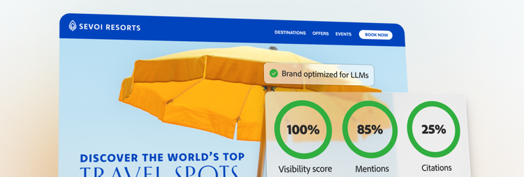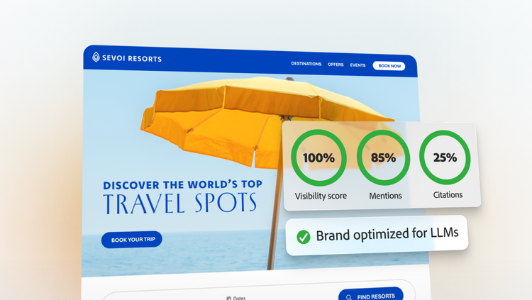 Adobe LLM Optimizer로 AI 검색 결과에서 자사 브랜드가 노출되는 방식을 정의하세요. 고객 여정의 모든 단계에서 측정 가능한 가시성, 적격 트래픽, 영향력을 높일 수 있습니다.
